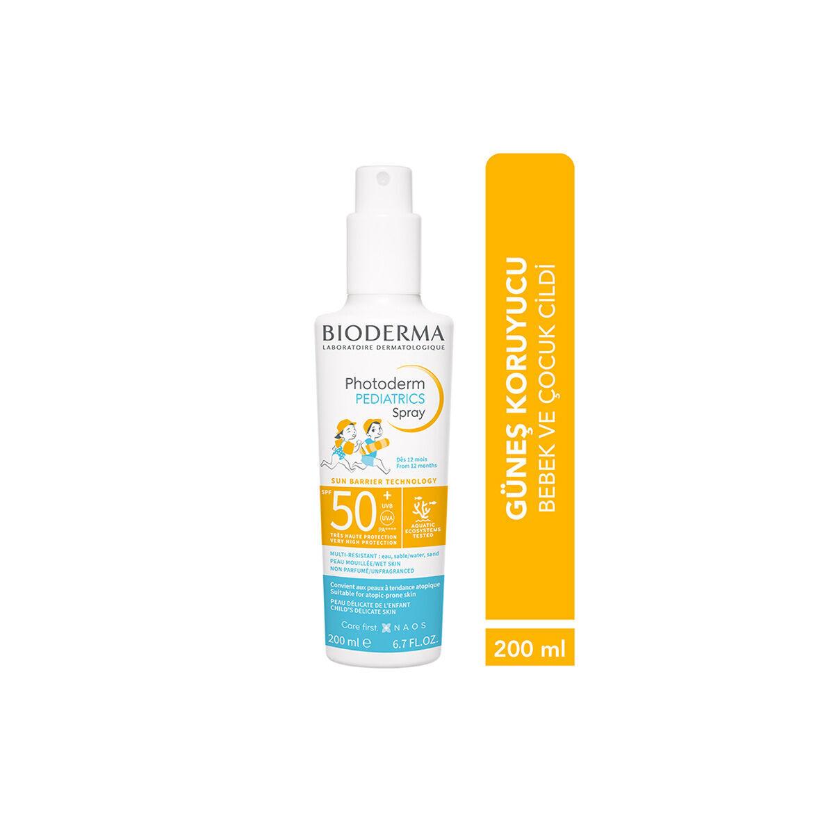 1 yaş ve üzeri çocukların ve bebeklerin hassas cildi için çok yüksek koruma sağlayan, suya ve kuma dayanıklı sprey güneş koruyucu