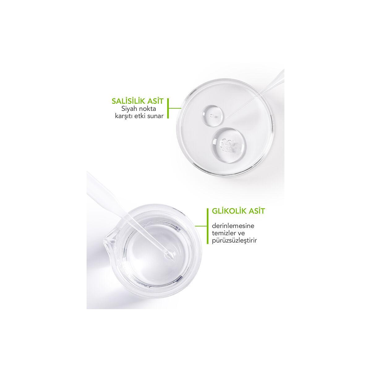 İçeriğindeki salisilik asit (%1,8) ve glikolik asit (%1) sayesinde cildi kurutmadan derinlemesine temizler ve cildi pürüzsüzleştirir.