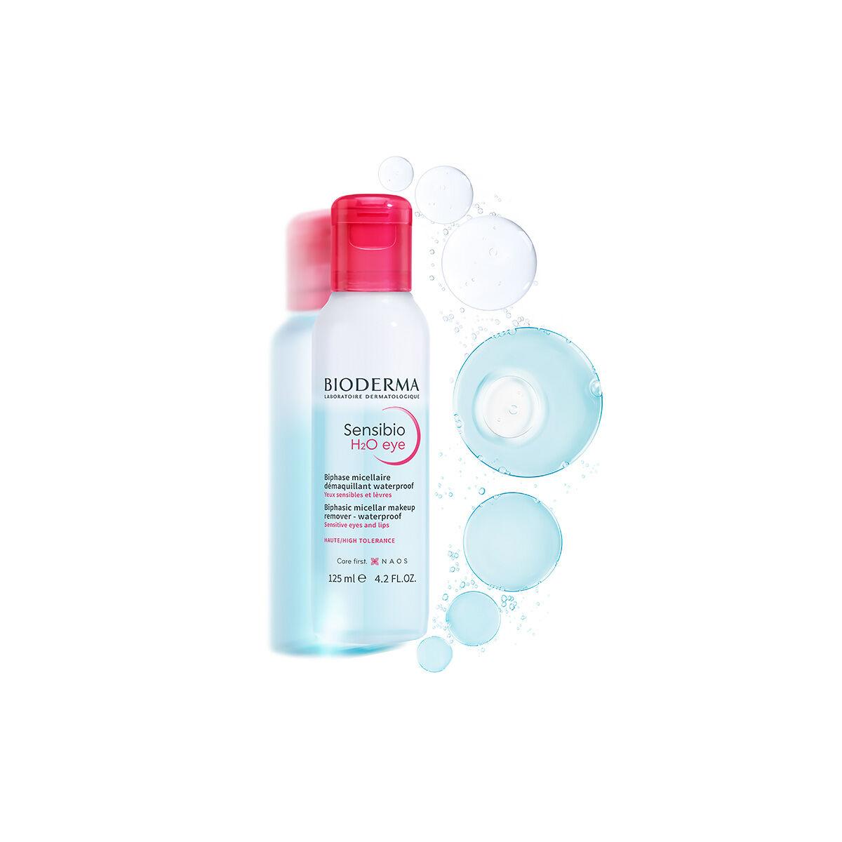 Sensibio H2O Eye, suya dayanıklı makyajı bile gözlerden ve dudaklardan tek bir hamle ile cilde zarar vermeden mükemmel bir şekilde temizler.