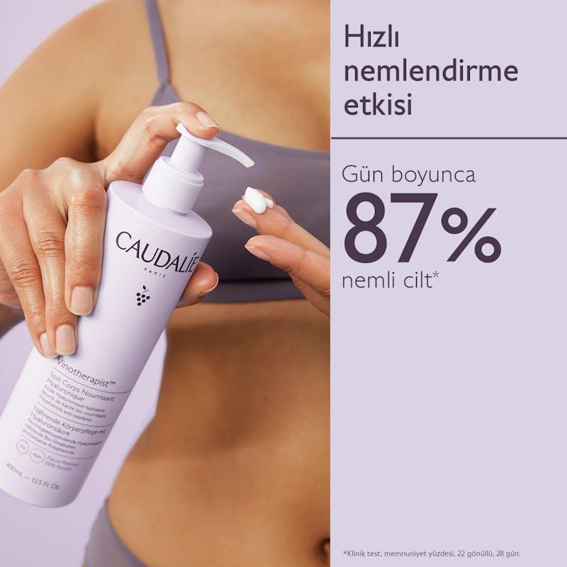 Sabah ve akşam, her günKeşfet Besleyici Hiyalüronik Vücut Losyonu, cildi anında nemlendirerek ve besleyerek gün boyunca yumuşak, esnek ve aydınlık bir cilt sağlar. Cildi tıpkı Vinothérapie™ Spa bakımı sonrasındaki gibi rahat bir hisse kavuşturur. Ferahlatıcı ve hafif dokusuyla yağlı his bırakmadan cilt tarafından hızlıca emilir ve cildi nazik kokusuyla sarar.