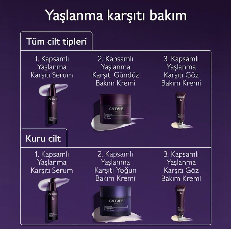 Biliyor muydunuz? Premier Cru Kapsamlı Yaşlanma Karşıtı Yoğun Bakım Kremi’nin içeriğindeki bio-seramidler, cilt bariyerindeki lipitlerle benzer işlev göstererek cilt bariyerini güçlendirir. Ciltteki su kaybını azaltır ve kuru ve hassas ciltlere rahatlık verir.
