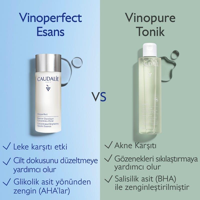 Keşfet Leke Karşıtı ve Işıltı Verici Esans, Vinoperfect leke karşıtı bakım rutininin ilk adımıdır. Sebebi ne olursa olsun her tür koyu leke görünümünü düzeltmek (güneş, akne, yaşlanma, hamilelik) ve yeni leke oluşumunu önlemek isteyen kadınlar için idealdir.