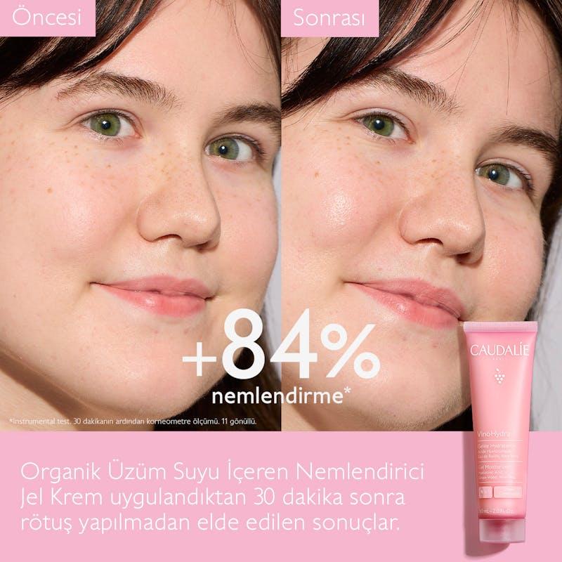 Sabah ve akşam serumunuzdan sonraKeşfet VinoHydra Nemlendirici Jel doğal bir nem desteği sağlar. Silikon içermeyen, ferahlatıcı jel-krem dokusuyla cildi yağlı his bırakmadan nemlendirir. Karma ve hassas ciltler için uygundur. Uygulamanın hemen ardından cilt daha dolgun, yoğun olarak nemlenmiş, ferah bir hisse kavuşur.