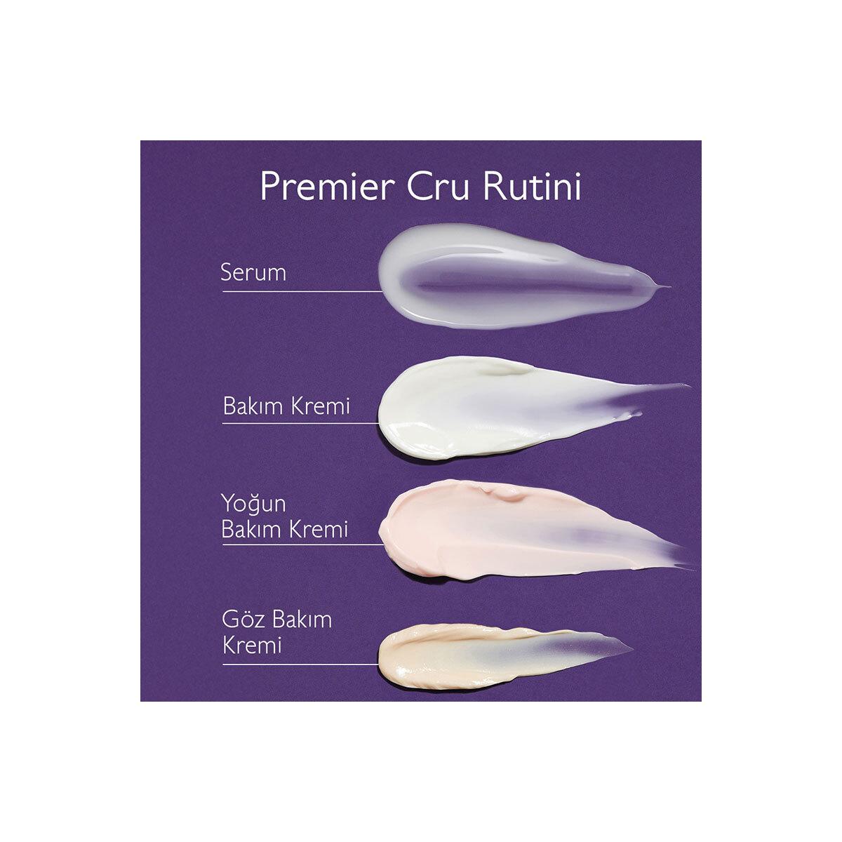 Etkinliğini patentli TET8™ teknolojisinden alan Premier Cru Göz Bakım Kremi, göz çevresini aydınlatmaya ve 8 yaşlanma belirtisine karşı kapsamlı yaşlanma karşıtı etki sunar: kaz ayak görünümü, dudak çevresi kırışıklıkları, ince çizgi görünümü,koyu halka görünümü, beslenme, nem ve ışıltı.