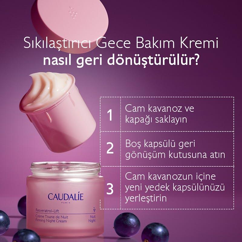 Akşam, serumdan sonraKeşfet Caudalie güzellik ve eko-sorumluluğu bir araya getiriyor. Kapsüller, Sıkılaştırıcı Gece Bakım Kremi kavanozunu kolayca yeniden doldurmanızı sağlar. Daha iyi koruma için yeniden doldurulabilir kavanoz ile kullanılmak üzere tasarlanmış dolum. Sadece yeni Resveratrol-Lift serisi ile uyumludur.