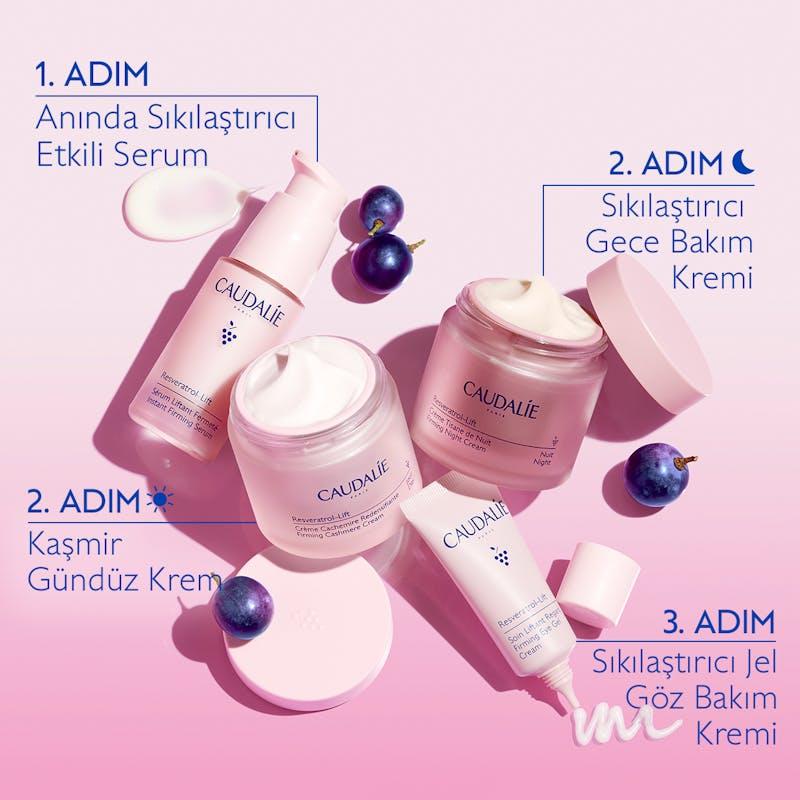 Sıkılaştırıcı Gece Bakım Kremi, gece boyunca kırışıklıkları pürüzsüzleştirerek cildi sıkılaştırmaya ve cilde dinlenmiş aydınlık bir görünüm kazandırmaya yardımcı olur. İnovasyonun kalbinde Vegan Tip 1 Kolajen** yer alır. Bitkisel türevli bu kolajen, yaşlanma karşıtı ve patentli özel bir bileşenle (asma sapı resveratrolü, hiyalüronik asit ve vegan kolajen güçlendirici) birlikte 3 farklı tip kolajenin üretimini hızlandırır.