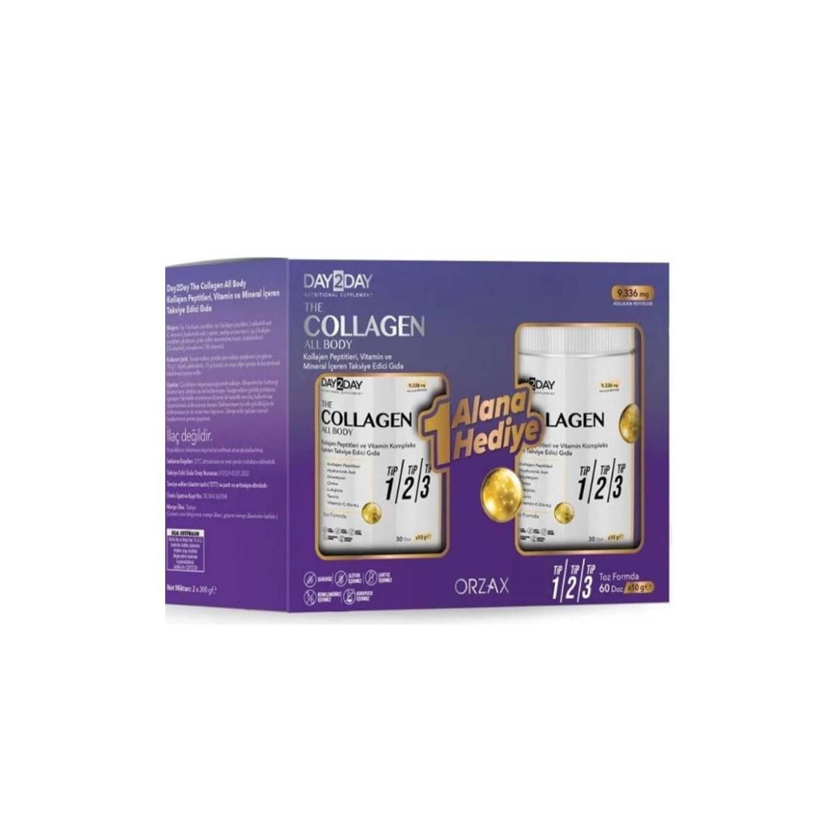 Toz formda kolajen peptitleri, vitamin ve mineral içeren takviye edici gıda.