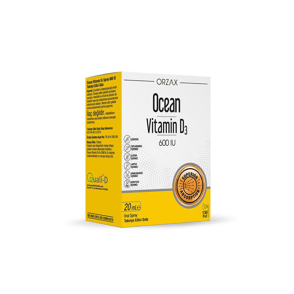 Orzax Ocean Vitamin D3 600 IU Sprey 20ml