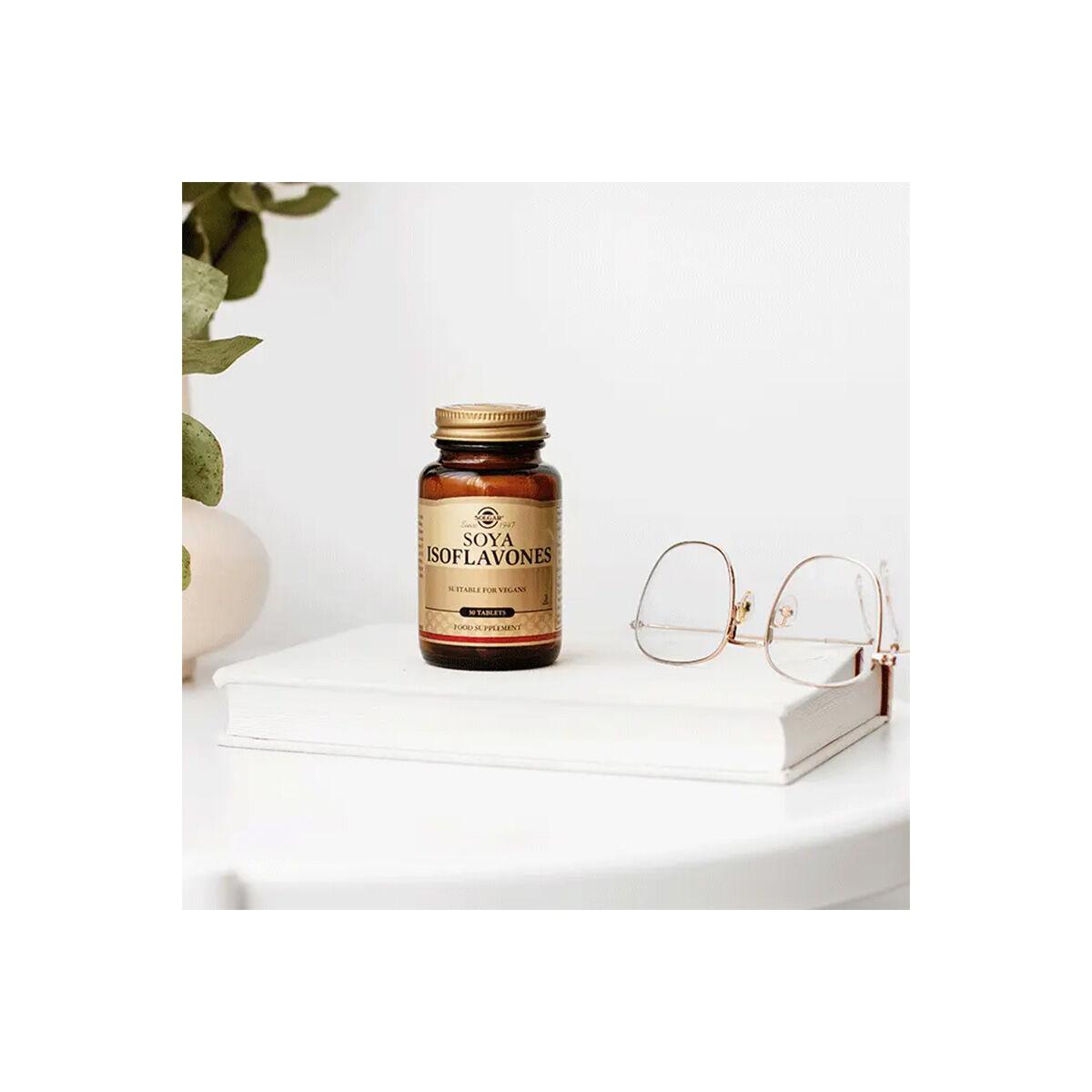 Soya fasülyesi tohum ekstresinden gelen soya izoflavaonları içeren takviyedir.