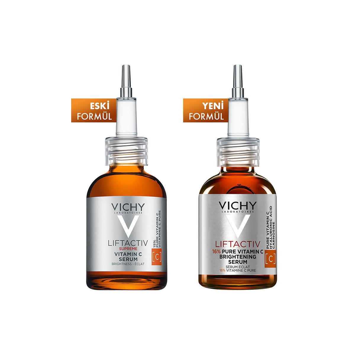 Saf C vitamini aydınlatıcı serum. İnce çizgi görünümüne karşı bakım. Yapışkan his bırakmaz, parlama yapmaz. Cilde hızlı nüfuz eden sulu doku.