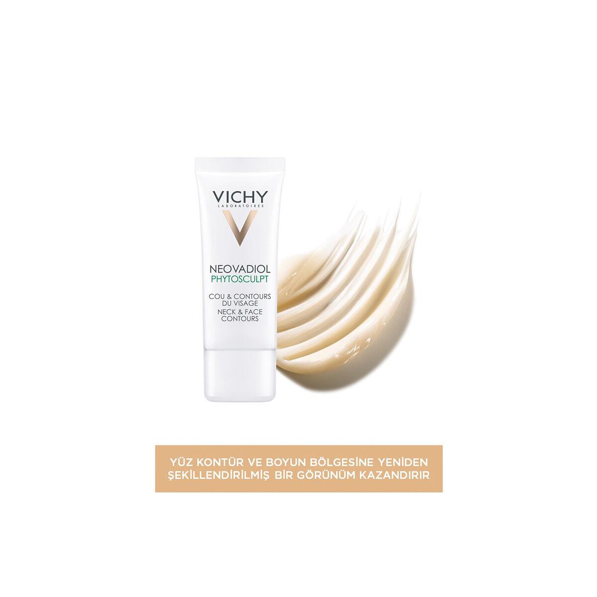 Menopoz dönemindeki ciltlerin kullanımına uygun Yüz ve boyun bölgesine sıkılık kazandırmaya yardımcı Vichy Mineralli Termal Su ile zenginleştirilmiş bakım